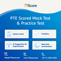 79score.com is one of the best online PTE practice platforms, offering PTE mock tests and section-wise PTE practice tests to the PTE aspirants as well as PTE training institute. Our mission is to help to solve people's English language problems, who wish to migrate and study abroad. Our tests can be given by students from Australia, New zealand, India or any all over the globe. There are some of the features which mentioned here: real-time test environment for practice, Mock test with latest updated questions from real exam, AI generated result, instant scoring with live scorecard, suggestion for areas of improvement, sample answers, detailed analytics with the graphical representation of scores, Highlights your error in each section.